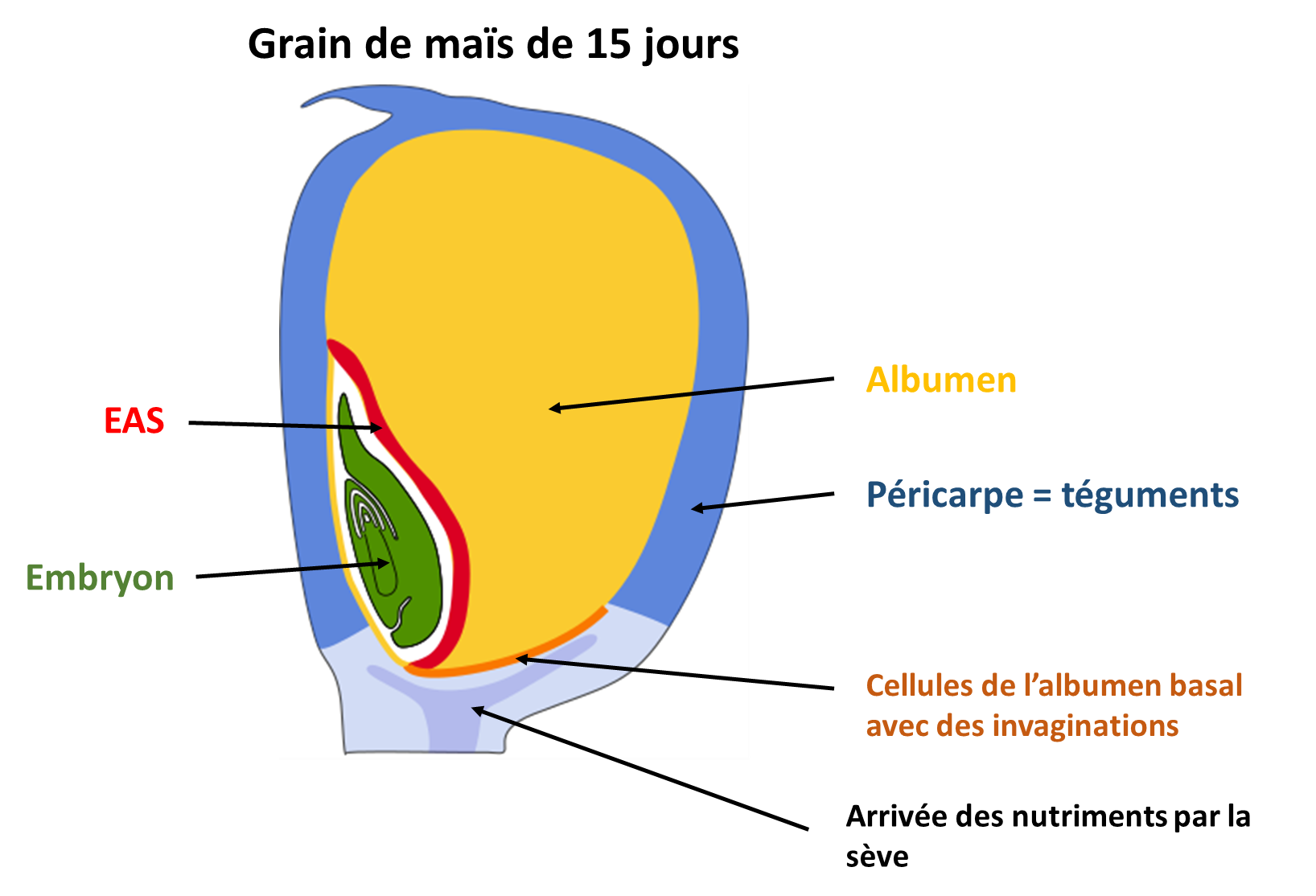 Enfin, la mise en place de l’EAS est fortement dépendante de l’embryon car en absence d’embryon dans le grain, l’identité de l’EAS ne se met que partiellement en place. Un dialogue entre l’embryon et l’albumen est ainsi requis pour une mise en place correcte de ce tissu.