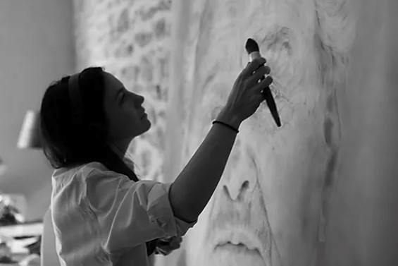 Très t?t dans son parcours artistique, Anne Goyer s’intéresse aux techniques de peinture et de dessin anciennes, telles que les ic?nes russes ou les fresques pompéiennes. Assez peu enseignées aujourd’hui dans les écoles d’art, elle se forme à ces techniques auprès d’artistes spécifiques. Elle y apprend par exemple à dessiner en faisant la prière de l’iconographe dans l’esprit de la tradition. ? Dans ces techniques Il y a vraiment tout un travail sur l’approche du trait, de la couleur, de la couche, de la profondeur, mais aussi de la mise en condition dans la recherche d’une émotion au service du sujet traité. Il se trouve que ce bleu est apparu à ce moment-là ?. Plus qu’un hasard, la découverte de ce bleu est donc l’aboutissement de tout un cheminement artistique.