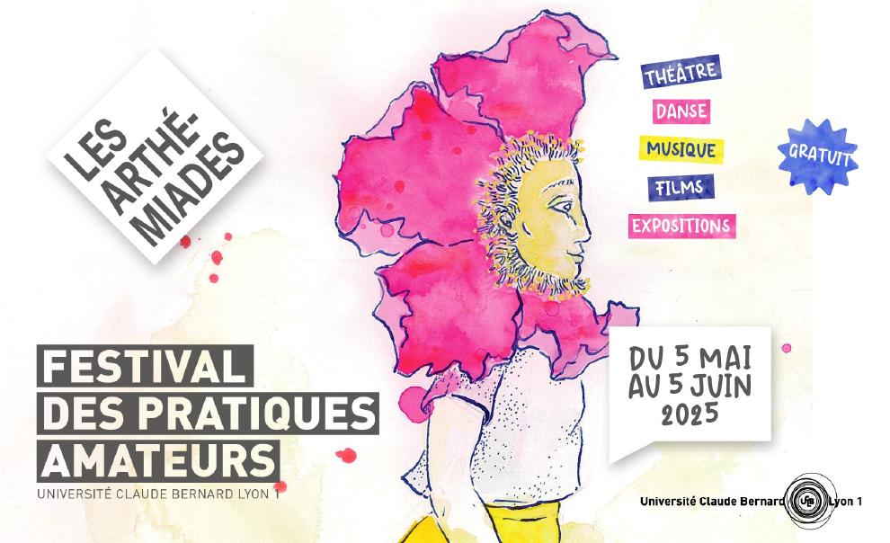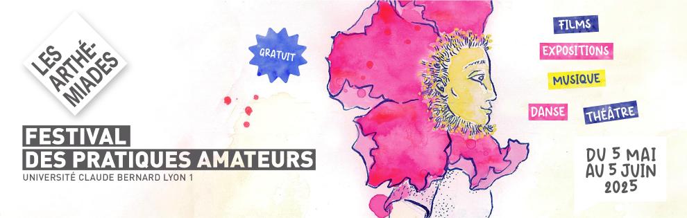 Le Festival des Arthémiades met en avant le travail des participants et participantes aux ateliers de pratique artistique proposés par la Mission Culture. Les spectacles et expositions sont le fruit d'une année de travail aux c?tés d'artistes et de professionnels du spectacle vivant. Les ateliers sont gratuits pour les étudiantes et étudiants et à un tarif réduit pour les personnels de l'université.Créé en 1997 par les étudiantes et étudiants de la troupe Arthémis de l’UCBL, le festival les Arthémiades est un véritable incubateur de culture à l’Université Claude Bernard Lyon 1. En plus de mettre en valeur les pratiques amateurs de l'université, il s’ouvre aussi a des jeunes artistes, à des compagnies émergentes et aux associations étudiantes.