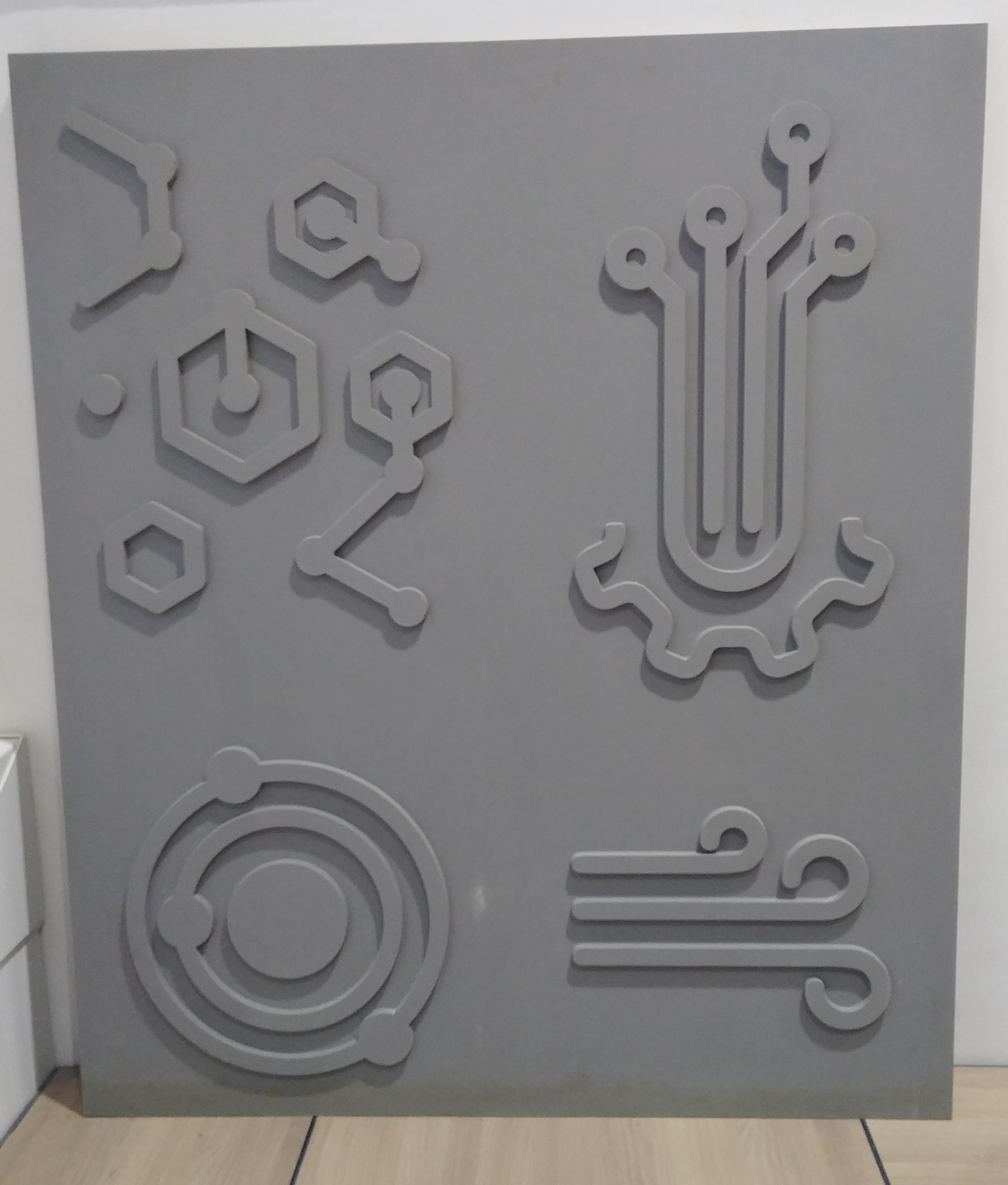 Exemple de plaque matricée en relief ayant servi à la création des signes dans le béton des fa?ades du CCDD.