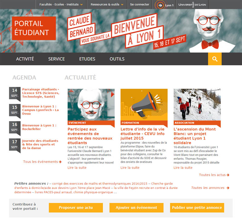 Refonte graphique, réorganisation du contenu pour accéder plus intuitivement à l’information et un moteur de recherche plus efficace, possibilité pour les étudiants de proposer des actualités, des événements et des petites annonces sur le portail.