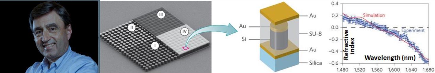 Nanotechnology has enabled the development of nanostructured composite materials (metamaterials) with exotic optical properties not found in nature. In the most extreme case, we can create materials which support light waves that propagate with infinite phase velocity, corresponding to a refractive index of zero. This zero index can only be achieved by simultaneously controlling the electric and magnetic resonances resonances of the nanostructure. We present an in-plane metamaterial design consisting of silicon pillar arrays, embedded within a polymer matrix and sandwiched between gold layers. Using an integrated nano-scale prism constructed of the proposed material, we demonstrate unambiguously a refractive index of zero in the optical regime. This design serves as a novel on-chip platform to explore the exotic physics of zero-index metamaterials, with applications to super-coupling, integrated quantum optics, optics,and phase matching.