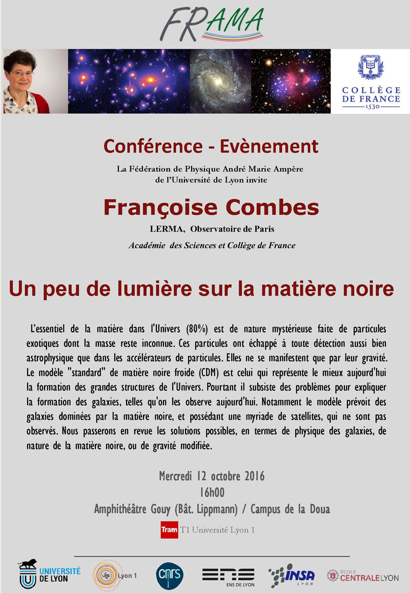Conférence de Fran?oise Combes (Académie des Sciences et Collège de France) invitée pat la Fédération de Physique André Marie Ampère de l’Université de Lyon.