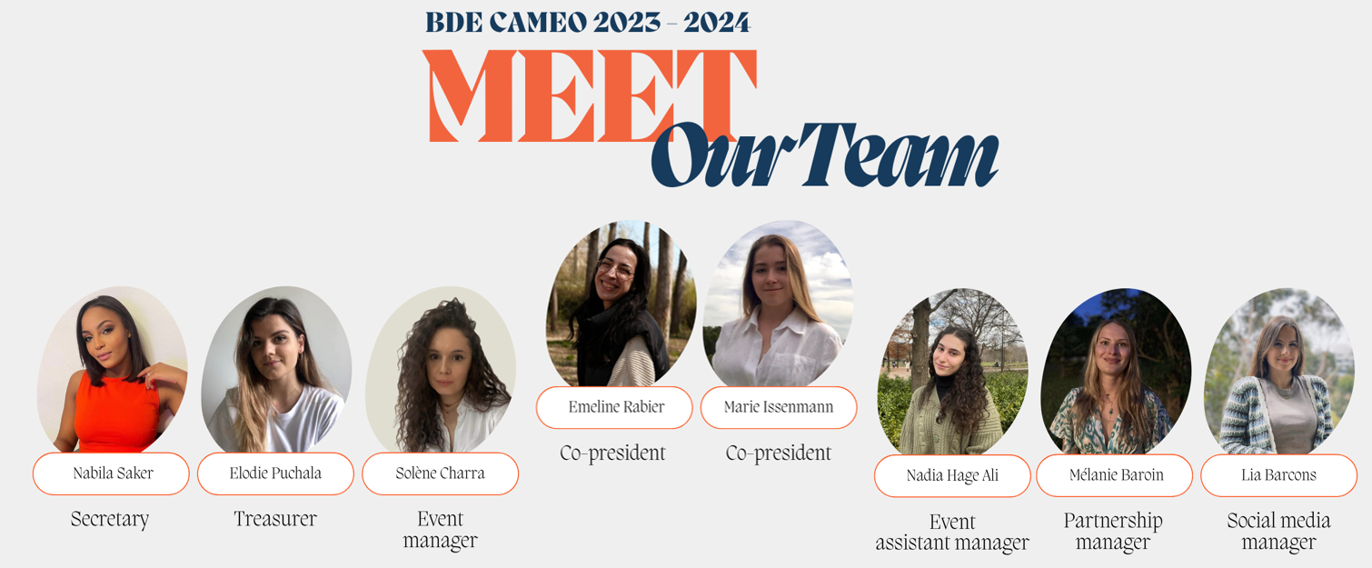 Co-présidentes : Marie Issenmann & Emeline Rabier (M2 Biologie du Cancer). Secrétaire : Nabila Saker (M2 Innovations thérapeutiques en Cancérologie). Trésorière : Elodie Puchala (M2 Innovations thérapeutiques en Cancérologie). Vice-présidente chargée de la communication externe et des 足球现场直播 : Mélanie Baroin (M2 Innovations thérapeutiques en Cancérologie). Vice-présidente chargée des réseaux sociaux : Lia Barcons (M2 Biologie du Cancer). Vice-présidentes chargées de l’évènementiel : Solène Charra & Nadia Hage-Ali (M2 Innovations thérapeutiques en Cancérologie)