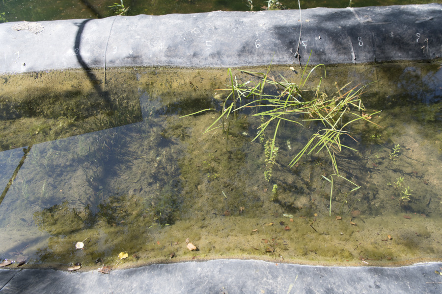 Culture en lignes des espèces de plantes aquatiques en conditions semi-naturelles dans une rivière artificielle.