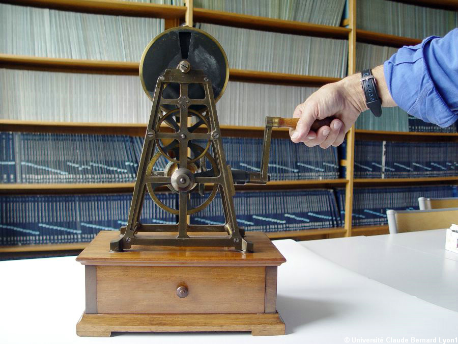 La présence d'appareils anciens de physiologie à la Doua tient au fait qu'une chaire de physiologie générale de la Faculté des sciences fut créée à Lyon dès 1883. Elle est confiée en 1887 à Rapha?l Dubois (1848-1929), ancien élève de Claude Bernard et de Paul Bert connu pour sa découverte du mécanisme de production de lumière par les êtres vivants. Dubois obtint un équipement très complet pour son laboratoire. Ancien sous-directeur du laboratoire d'optique physiologique, il avait inventé un ophtalmomètre présent dans la collection. Il publia en 1900 des Le?ons de Physiologie expérimentale et collabora au grand Traité de Physique biologique d'Arsène D'Arsonval, ouvrages largement utilisés pendant plusieurs décennies. Certains des collaborateurs de Rapha?l Dubois se spécialisèrent dans les recherches métaboliques, d'où la présence d'anciens manomètres de Warbourg utilisés pour la mesure de la respiration cellulaire. Son successeur, Daniel Cordier (1900-1960), fit l'acquisition des premiers spectrophotomètres, d'appareils à électrophorèse et de chromatographes qui offrent un panorama représentatif de l'outillage employé pour les recherches sur le métabolisme dans les années 1950-70. La collection s'est aussi enrichie par des dons : citons un prototype de l'électrophotomètre inventé en 1936 par Paul Meunier (1908-1954) qui fut professeur de chimie biologique à la Faculté des Sciences de Lyon. D'autres appareils documentent les recherches électrophysiologiques de la même époque et d'autres encore (microscopes, balances, centrifugeuses ou calculatrices) sont ceux que les biologistes utilisaient habituellement.